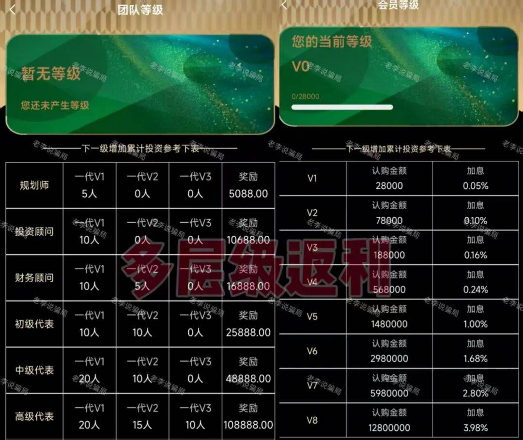 通过超高收益、拉人头奖励吸引参与者。宣称静态年化收益可翻53倍,严重违反金融常识。上下13代层级奖励,收益高度依赖新人加入,一旦资金流入放缓,参与者将血本无归。