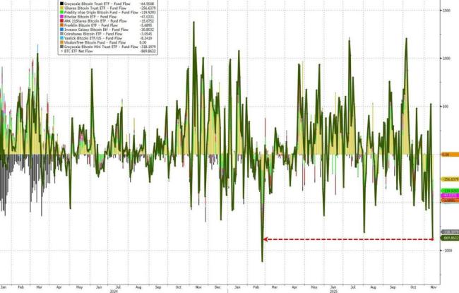 长期持有者在过去30天内抛售了约81.5万枚比特币,创下2024年初以来的最高纪录;市场流动性枯竭导致比特币ETF连续五周净流出