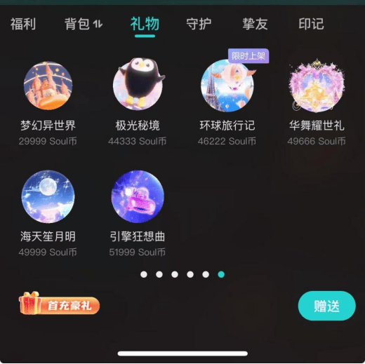当然,如果你找到了“心宜”的另一半,但对方很火,热度很高,想要和对方聊天还需要先刷礼物。最便宜的如小心心、纯爱极星、甜甜圈等,价格仅在10Soul币以下,高档的如“漫天花束”、“古力古力”、“春日漫漫”等,价格在1400Soul币-2700Soul币不等,即人民币280元-540元。此外,甚至有高达上万Soul币的礼物,比如价值51999Soul币的“引擎狂想曲”,换算成人民币就是10400元,价值46222Soul币的“环球旅行记”,换算成人民币则为9245元。