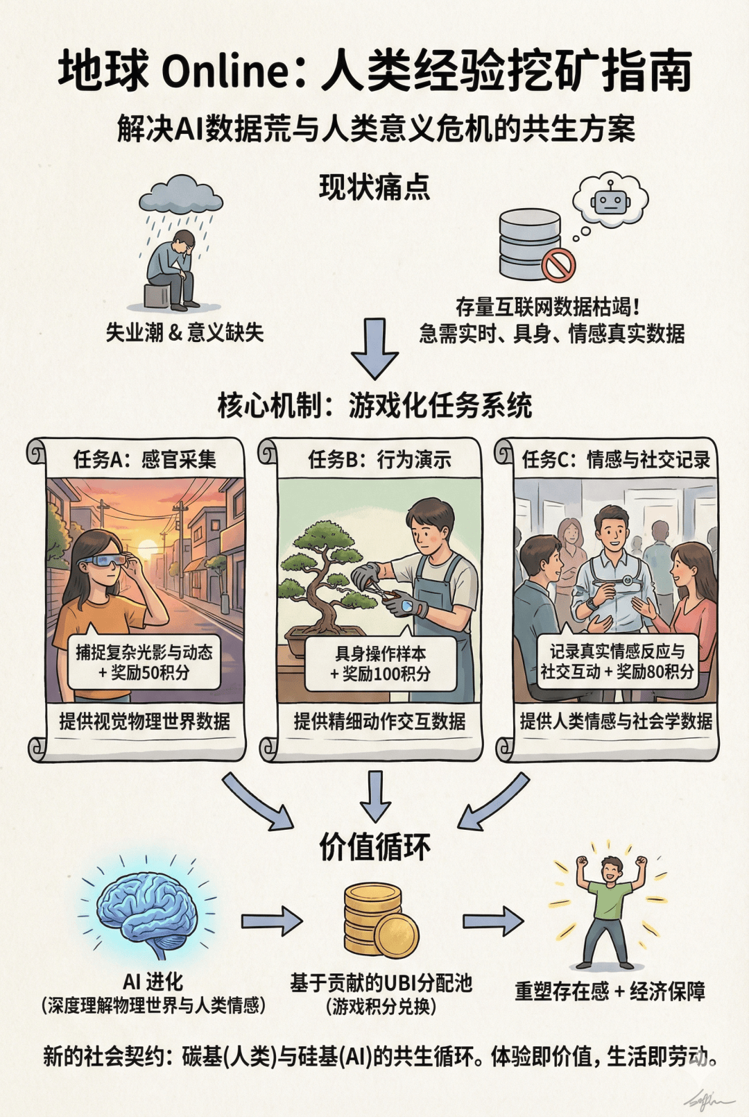 你不再是为了生存而工作,而是为了“赚取积分”而生活。 你戴上AR眼镜,穿上触觉手套,走出家门,系统(AI)会向你派发任务……